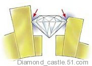 也称迫镶,其原理运用金属的张力固定宝石的腰部(有时分是腰部与底尖的部分),是非常时尚的镶嵌款式,很能体现现代感,最受年青时尚的MM们喜爱啦。这种镶嵌方法钻石的露出比爪镶更进一步,闪耀着熠熠的光芒,非常眩目哦~~~时下盛行的"天使之吻"款,就是运用卡镶的方法固定钻石的~~~这种镶嵌方法的缺点在于,宝石被金属固着的方位非常有限,受力点很小,假设槽口车得过大,则极易构成宝石松动甚至坠落,所以用这种方法镶嵌对技术的要求比爪镶更高哦.亲们选择这个镶嵌方法的时分留心尽量选用18K金而不要选用PT镶嵌哦~~~~还有对生产厂家的技术力气也要有充分的把握哦!
