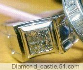 这儿介绍的是一般的田字无边镶哦~梵克雅宝天才的无边镶技术难度很高,大多数国内厂家还做不来哦,市场上也很少见,就不介绍咯.田字无边镶,断章取义就是镶嵌出钻石像一个"田"字咯其原理是将4枚方形钻石水平放入镶口,运用钻石的腰部彼此揉捏,周围的金属击打健壮后,镶嵌完结。镶嵌后效果非常美丽,将4枚钻石联接在一同而没有金属间隔,扩展了钻石的视觉效果,特别适合男人佩带哦。但是镶嵌的缺点是,钻石与钻石的结合处没有金属固定,只是依托彼此的揉捏力使之固定,所以假设一枚钻石松动,则其它三枚极易松动并构成坠落。所以亲们要给GG买无边镶的钻石戒指,一定要找工艺好的厂家才可以哟。