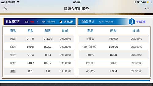 饰品回购价:千足金、18K黄金、Pt950、Pd990、Ag925