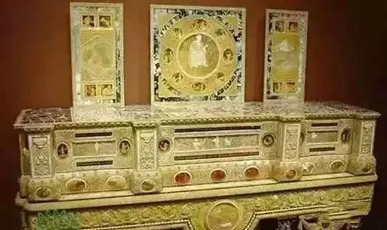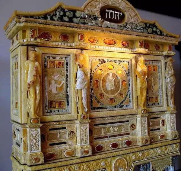 柜面上镶满了琥珀雕磨的《圣经》故事,
