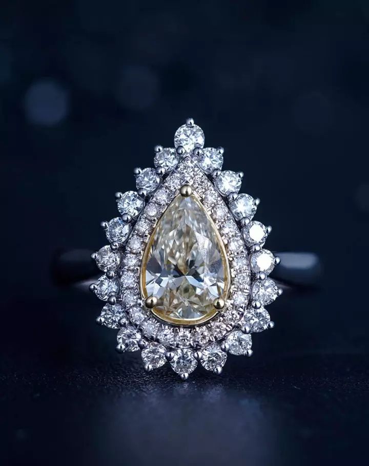 水滴形钻戒款式,可以让粗状的手指看起来更纤细。谦虚的、善变的、沉着的女性朋友。