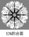 2)台宽百分比:台宽百分比的差异弱于冠角与亭角差异对于钻石光芒的影响程度。我们通常可以认为一颗台宽比介于55%到58%之间的明亮型钻石可以展现其最佳的美丽,尤其当钻石的重量大于0.50克拉时这个数值更加显得重要。