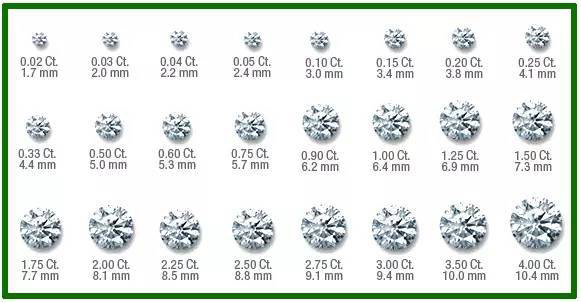 CARAT——克拉:钻石的重量以克拉计。1克拉等于0.2克。一克拉分为一百分,如0.75分克拉又称75分。重量相同的钻石,会因色泽、净度、切工的不同而价格相差甚远。