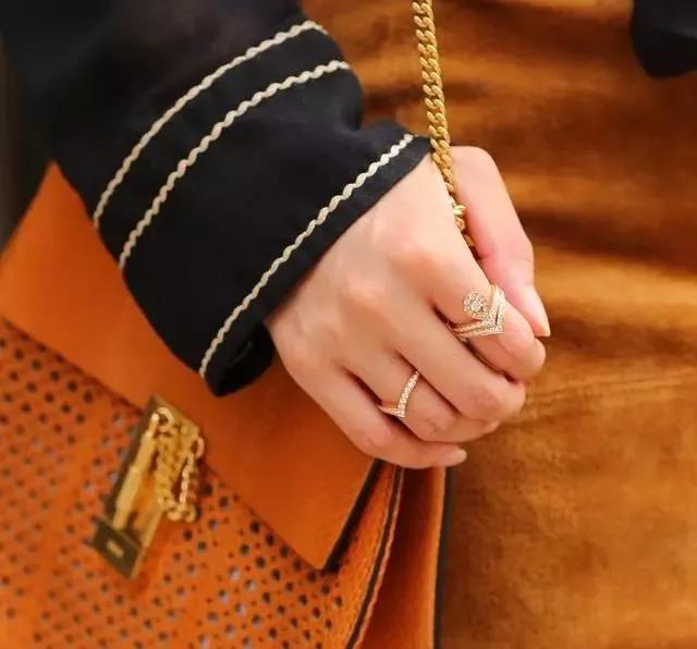 虽然叠戴很时尚,但如果每根手指都戴上戒指,太紧促、繁复,反而显得累赘,适度留白能放大艺术性和美感,留给人想象的空间,每只手留出一两根、甚至三根手指的空白,更有风头哦,同时要避免小拇指、无名指同时戴,以免招来过路财神,有财却留不住,还可能漏财。