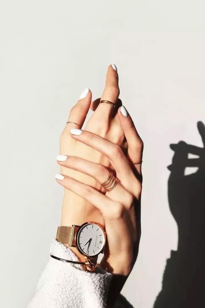 说说最常见的金属色甲油,可以和戒指浑然天成,但缺点就是挑肤色,建议皮肤白的女生进行穿搭。