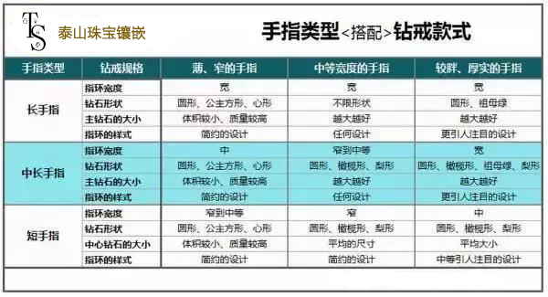 "手指类型配搭钻戒款式"表,帮助您挑选适合自己的钻戒: