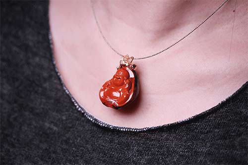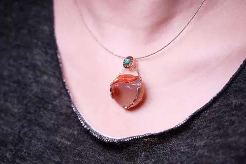 一枚设计独特的南红冰飘吊坠,