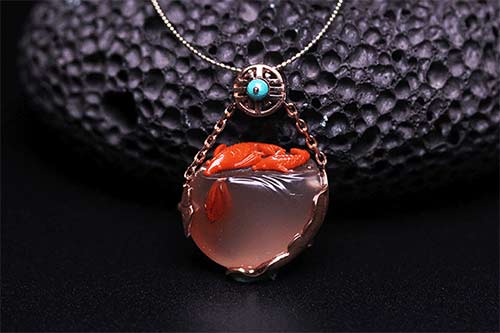 - 南红18K玫瑰金镶嵌 -