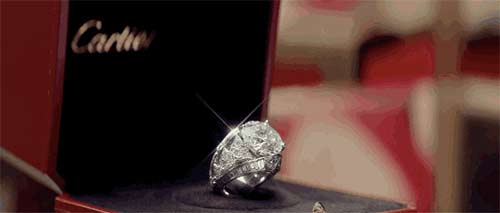 她说:我喜欢大颗的,闪耀的东西;如同有人坐在你对面,当她戴了一个钻石戒指,你是不可能看不到。