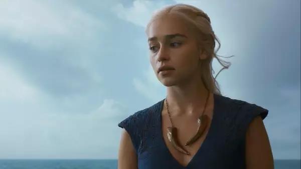 当然,此后龙母征战天下,决定融入野性世界,于是总佩戴着比较民族风的首饰。比如这个不知道是什么牙还是什么爪的项链。