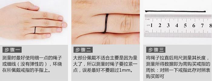1、如想得到更确切的尺寸,您可以在晚上测量,因为这个时候手指的尺寸最大,并建议多次测量取平均值。