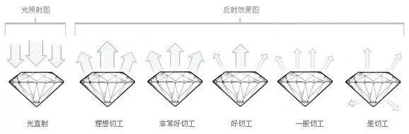 切工最好的就是Excellent(EX),但VeryGood(VG)以上的钻石就已经很不错了。下面的Fair(一般)、Poor(不良),不建议买。本来买钻石就是越闪越好,不闪要它干啥!